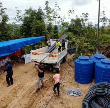 This flagship project, managed by Pembinaan Kiawayan Sdn. Bhd. in close partnership with Universiti Malaysia Sabah (UMS), introduced an innovative, portable treated water gravity system to the rural community of Kg. Rungus Nahaba, Tuaran. Designed to serve 30 households, the system delivers clean, drinkable water directly to homes using natural gravity flow and membrane filtration — without any need for electricity.